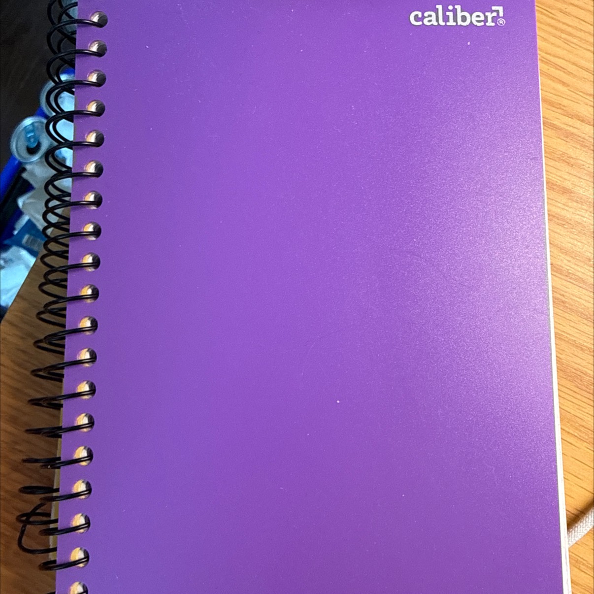 Caliber brand spiral notebook with purple cover and gold spiral binding. Features a clean, unmarked interior perfect for note-taking. In like-new condition with minimal wear.